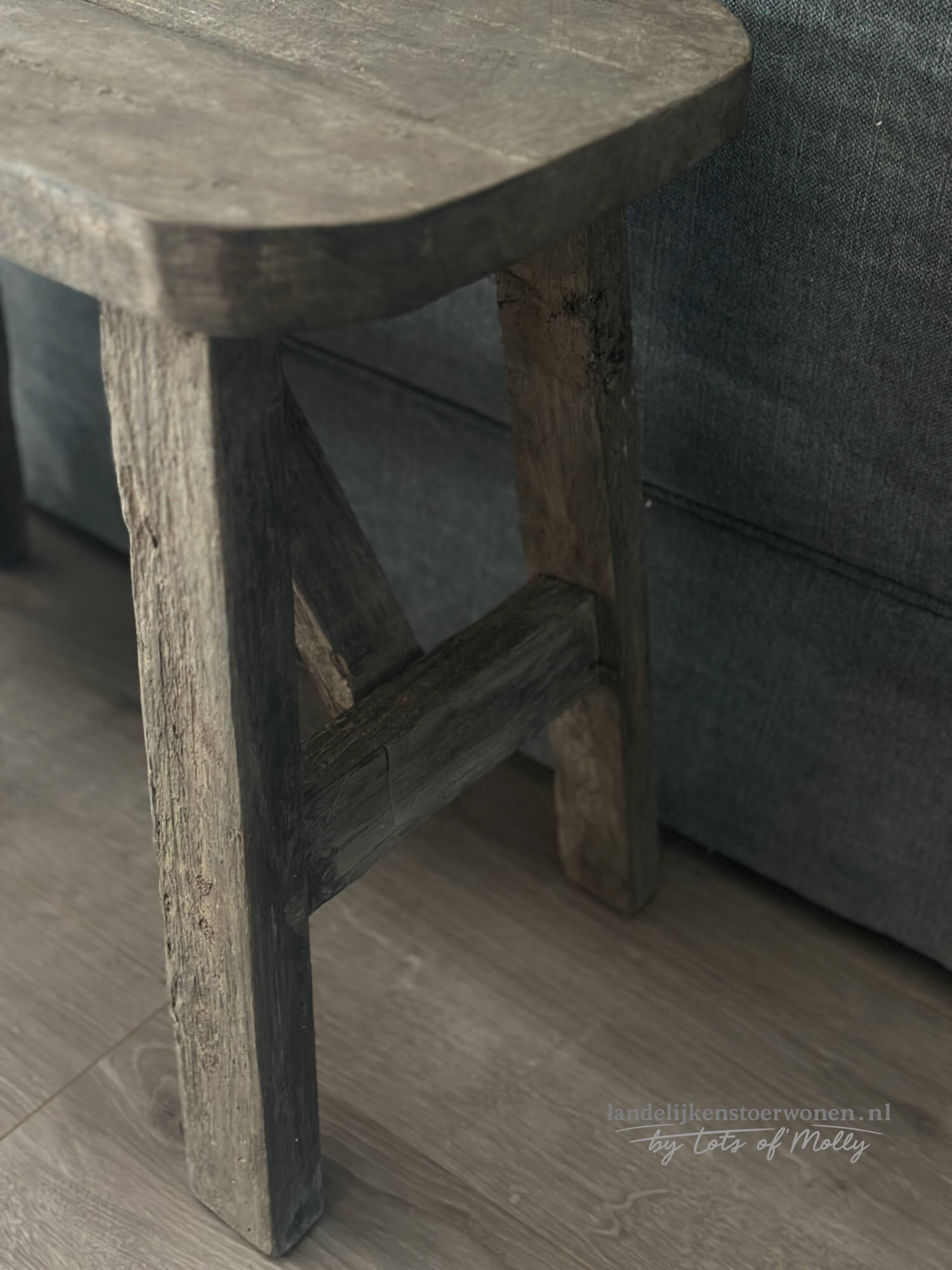 Dit Aura Peeperkorn bankje is gemaakt van oud hout en heeft een doorleefde look. Mooi als zitplek of decoratief in huis.