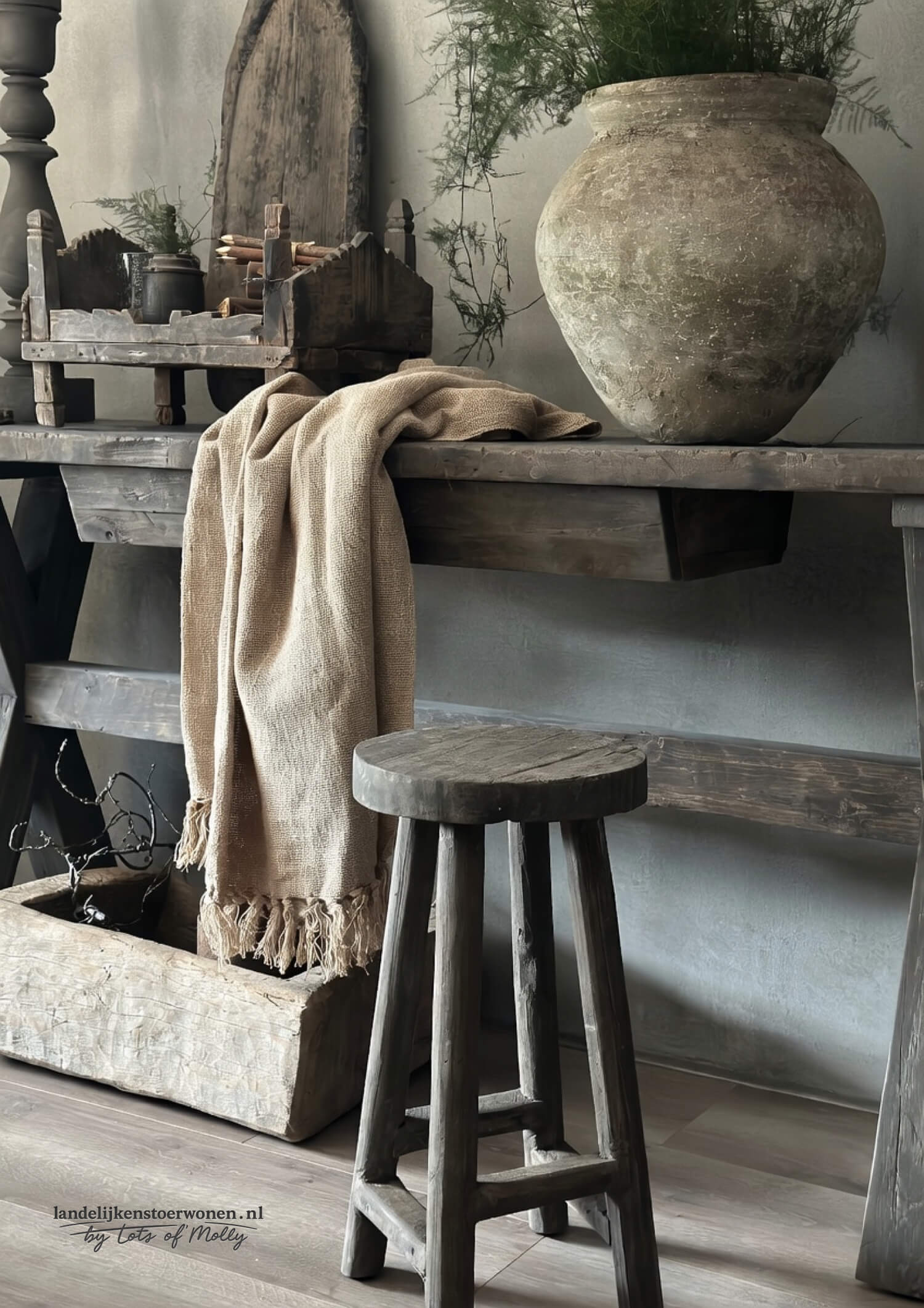 Perfect in een landelijke of sobere stijl. Het krukje kan ook gebruikt worden als kleine sidetable met mooie accessoires.