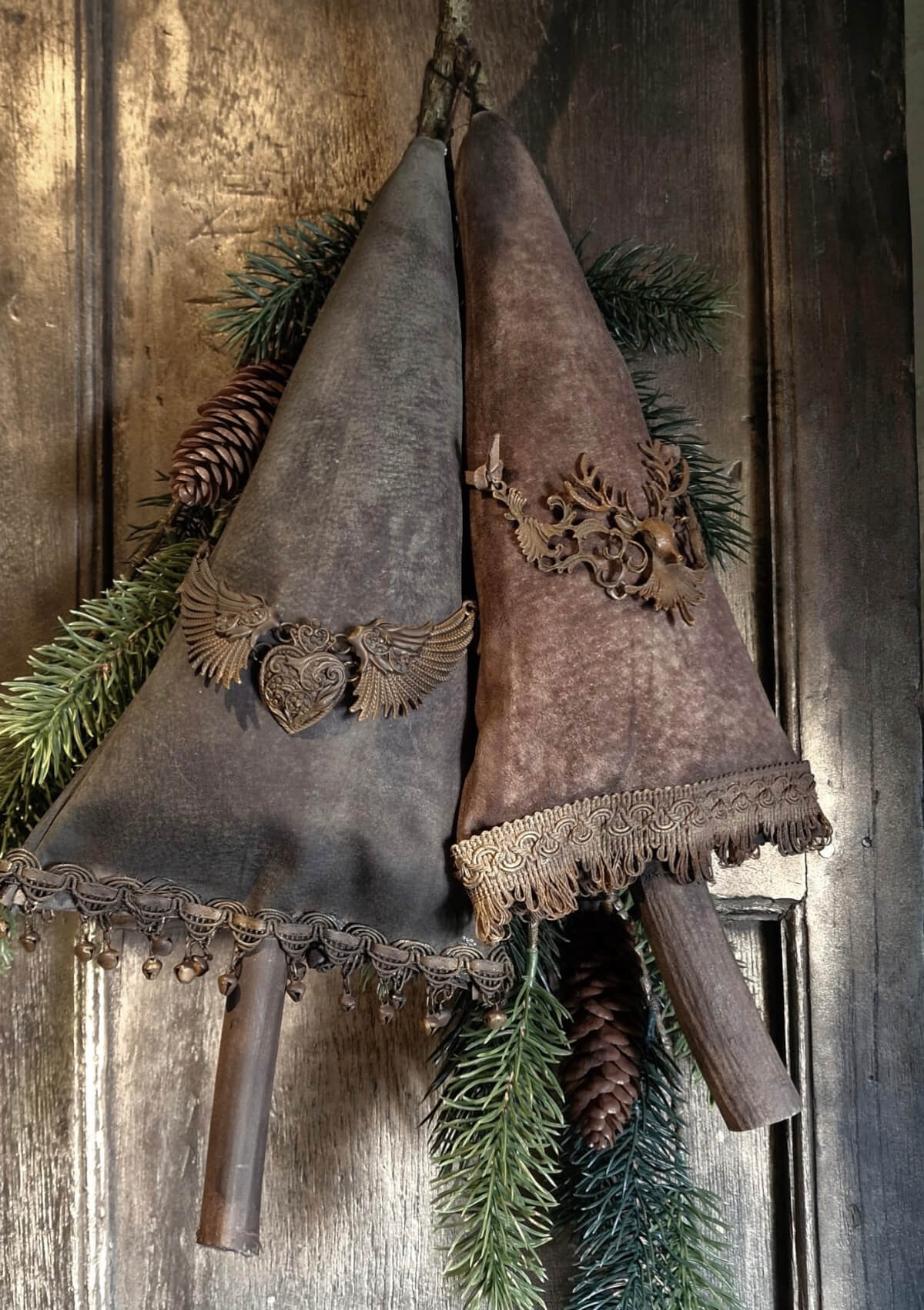 Elk boompje is een uniek stukje handwerk van De Meidenmuts. Gemaakt van stoer gewaxt leer en afgewerkt met diverse versieringen.