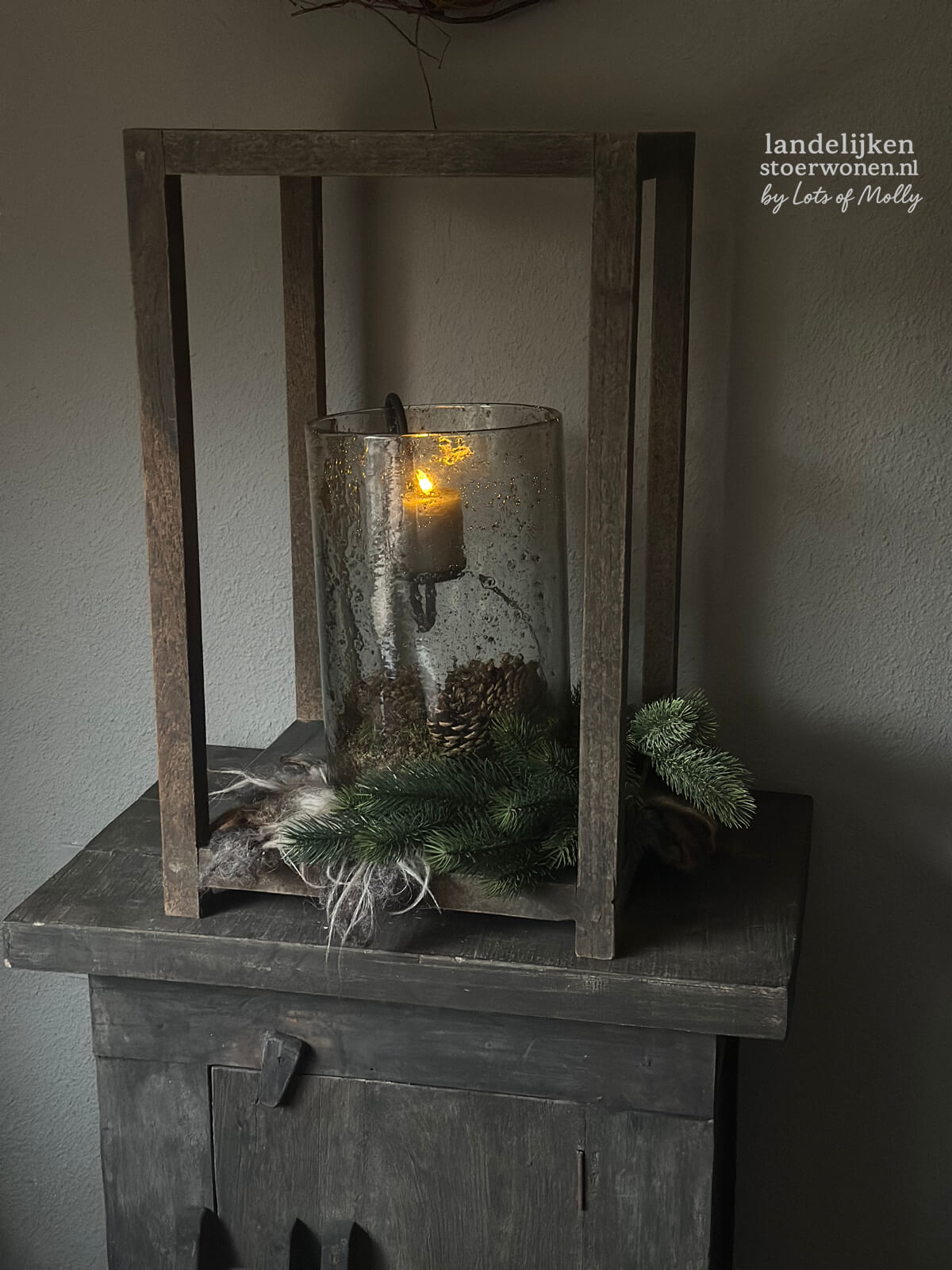 Houten Lantaarn Balthazar met open frame. Ideaal als display