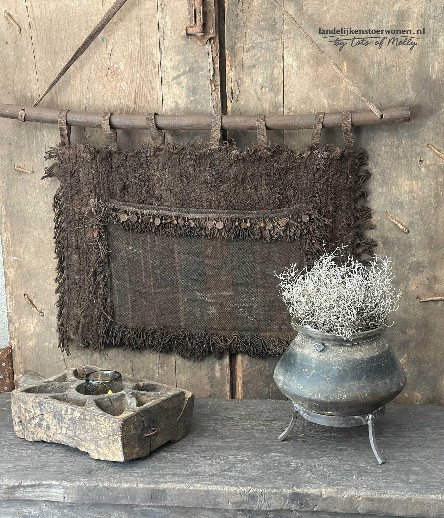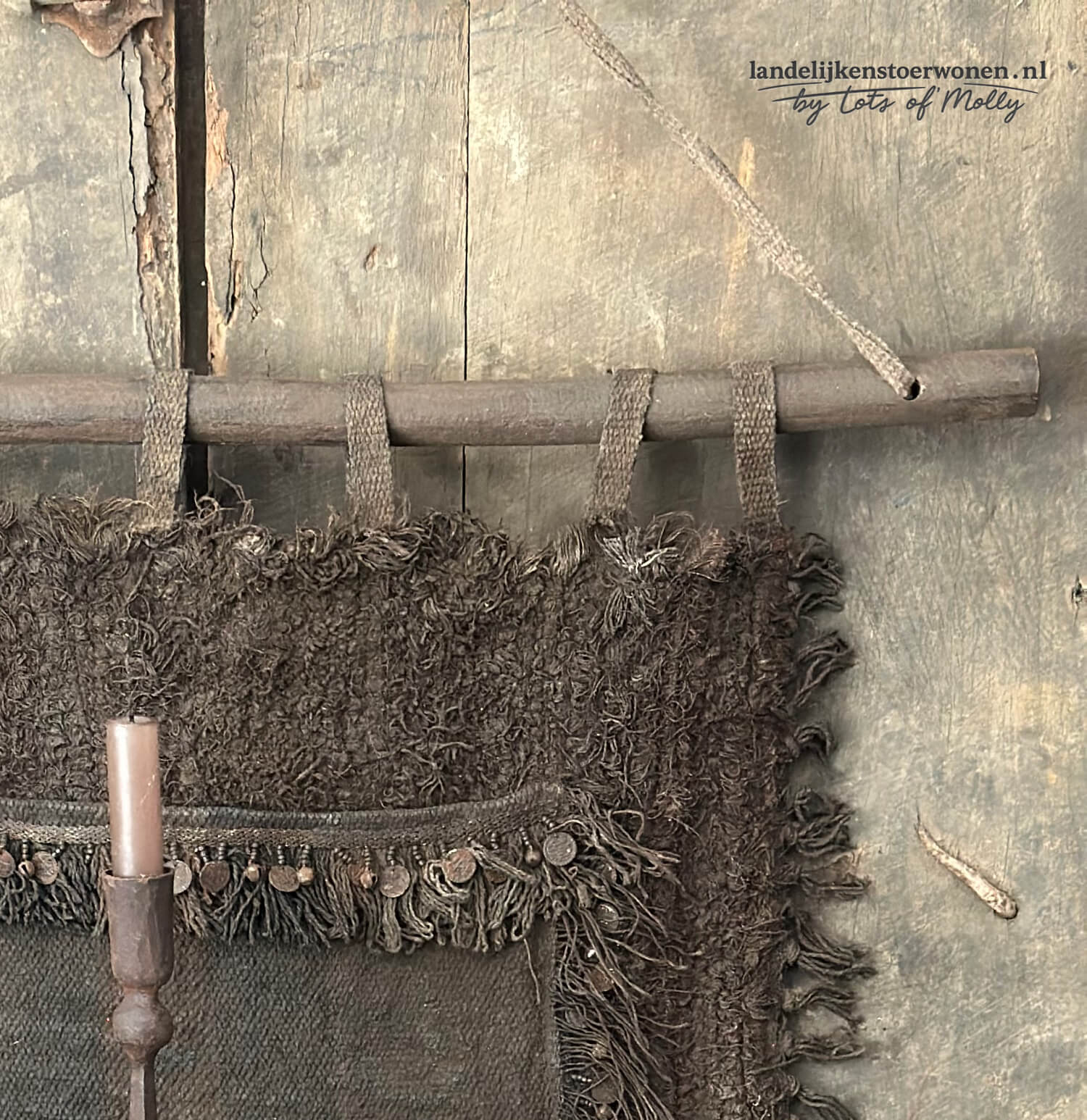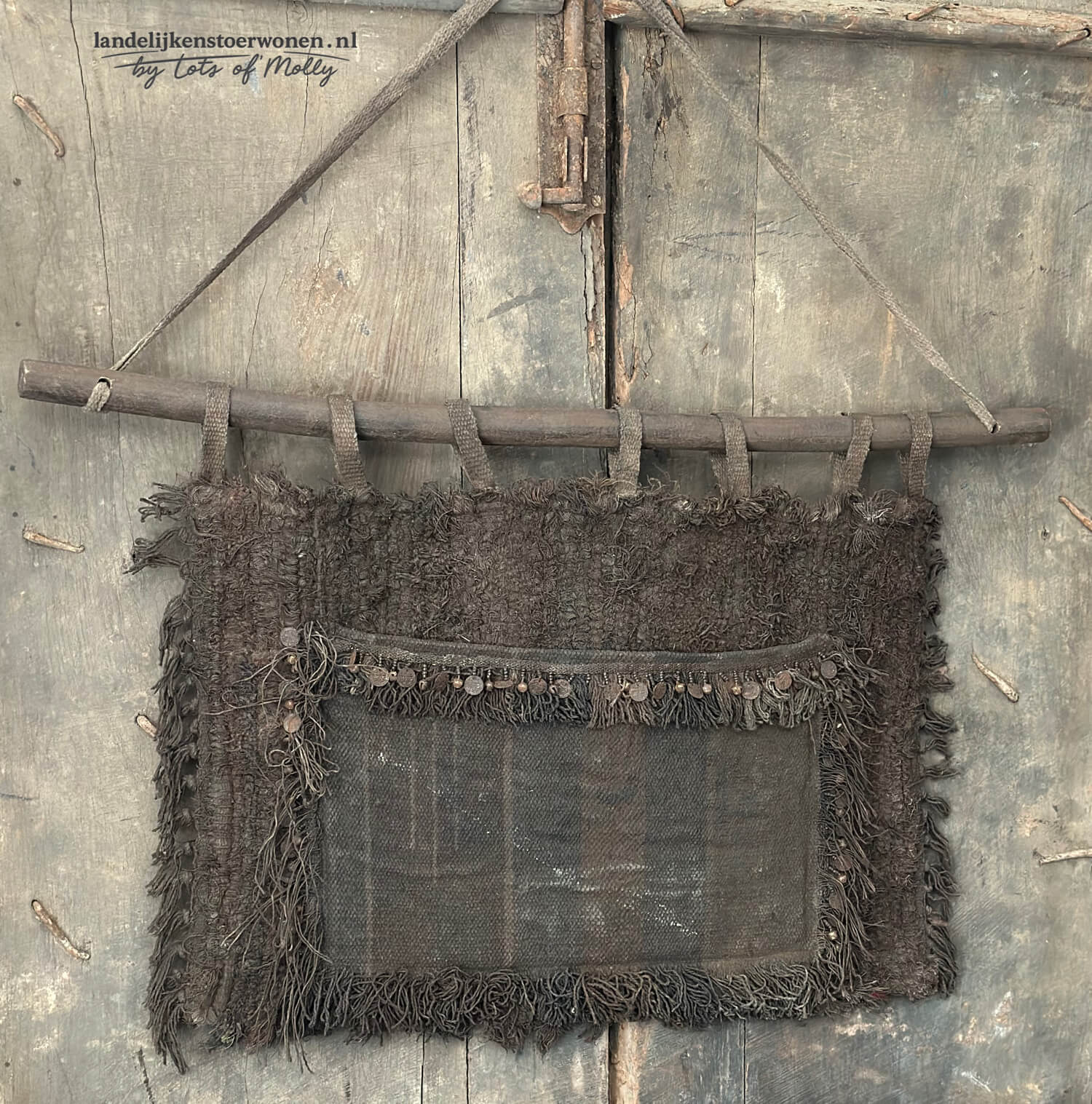 Kalkwanddoek met belletjes en muntjes op stok