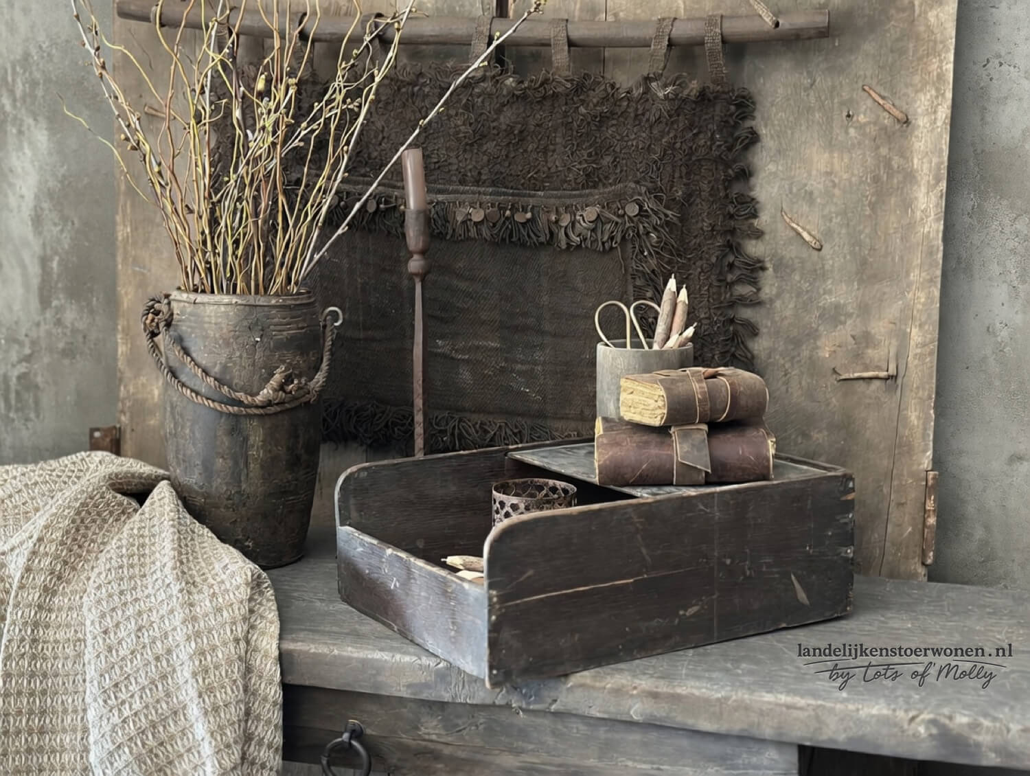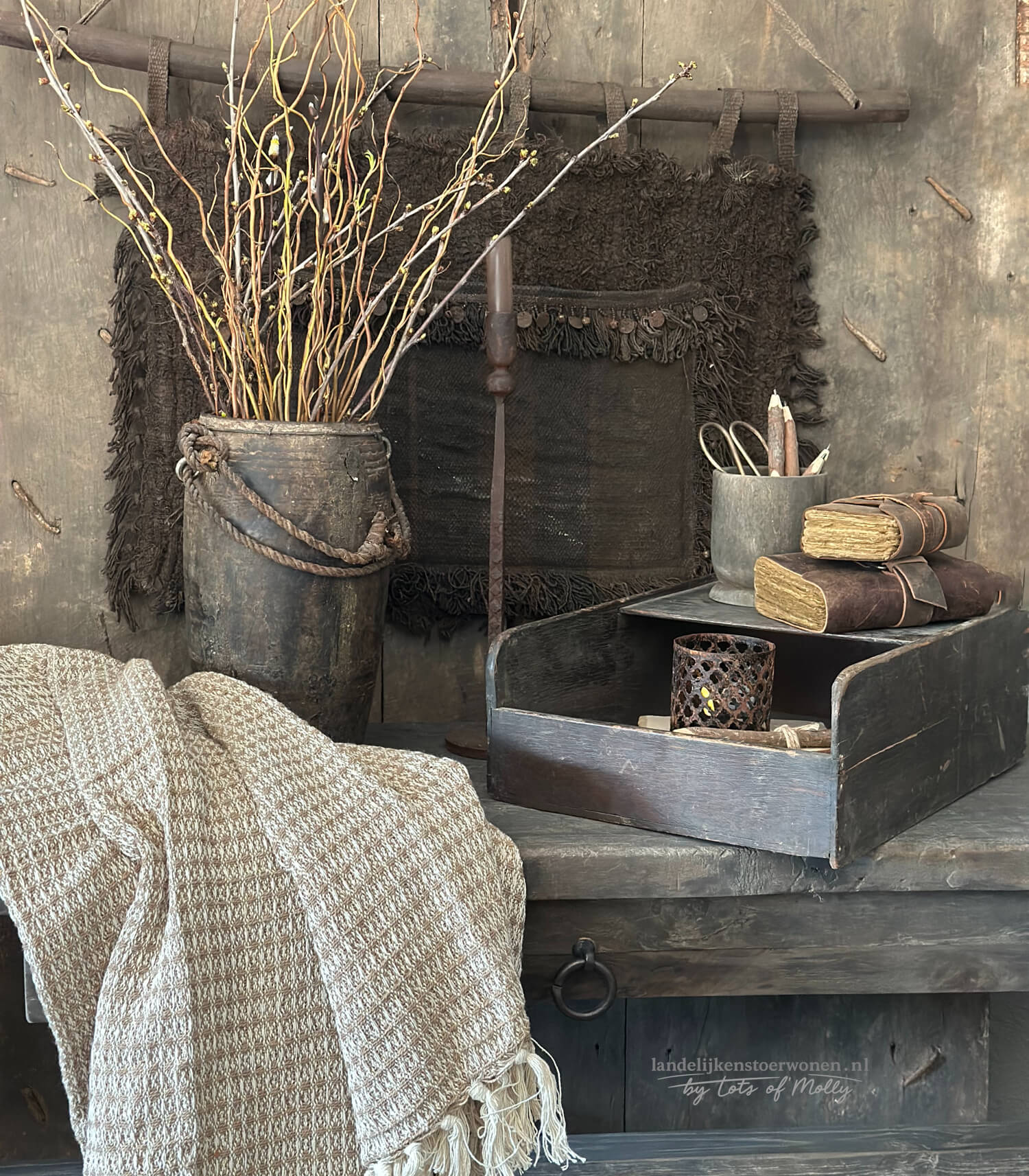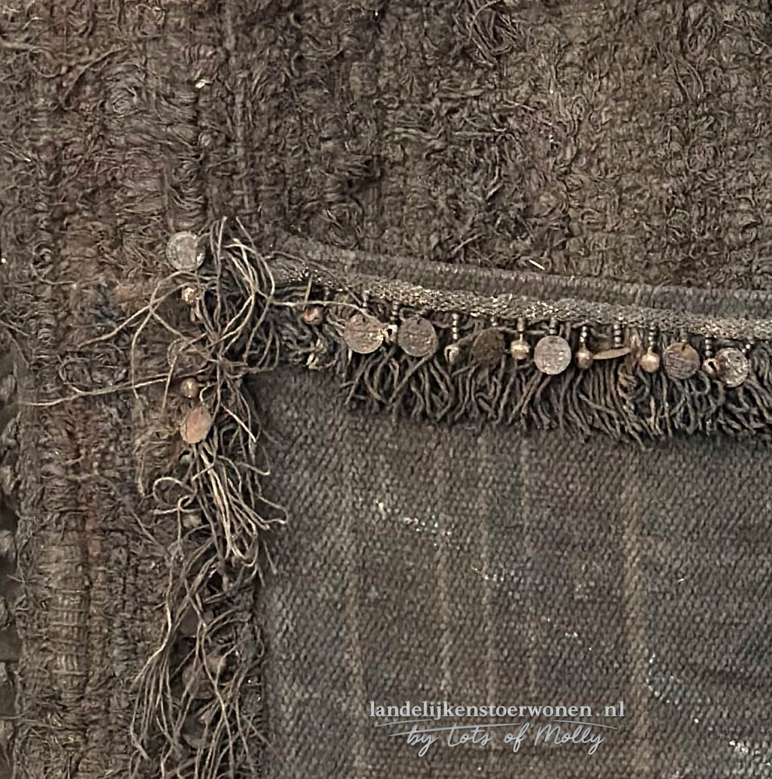 Kalkwanddoek met belletjes en muntjes op stok