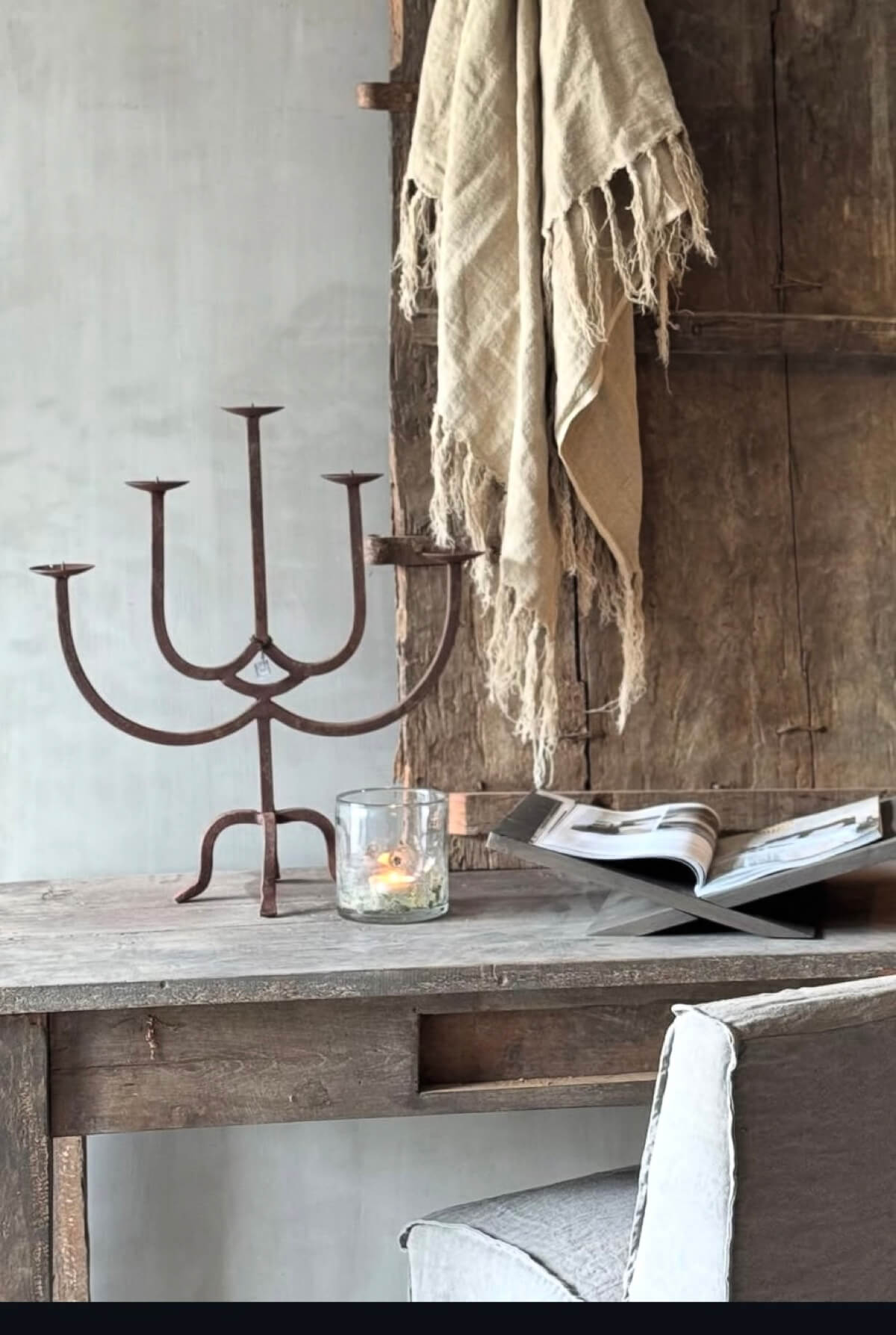 IJzeren kandelaar van Aura Peeperkorn geschikt voor stompkaarsen maar ook prachtig zonder kaarsen