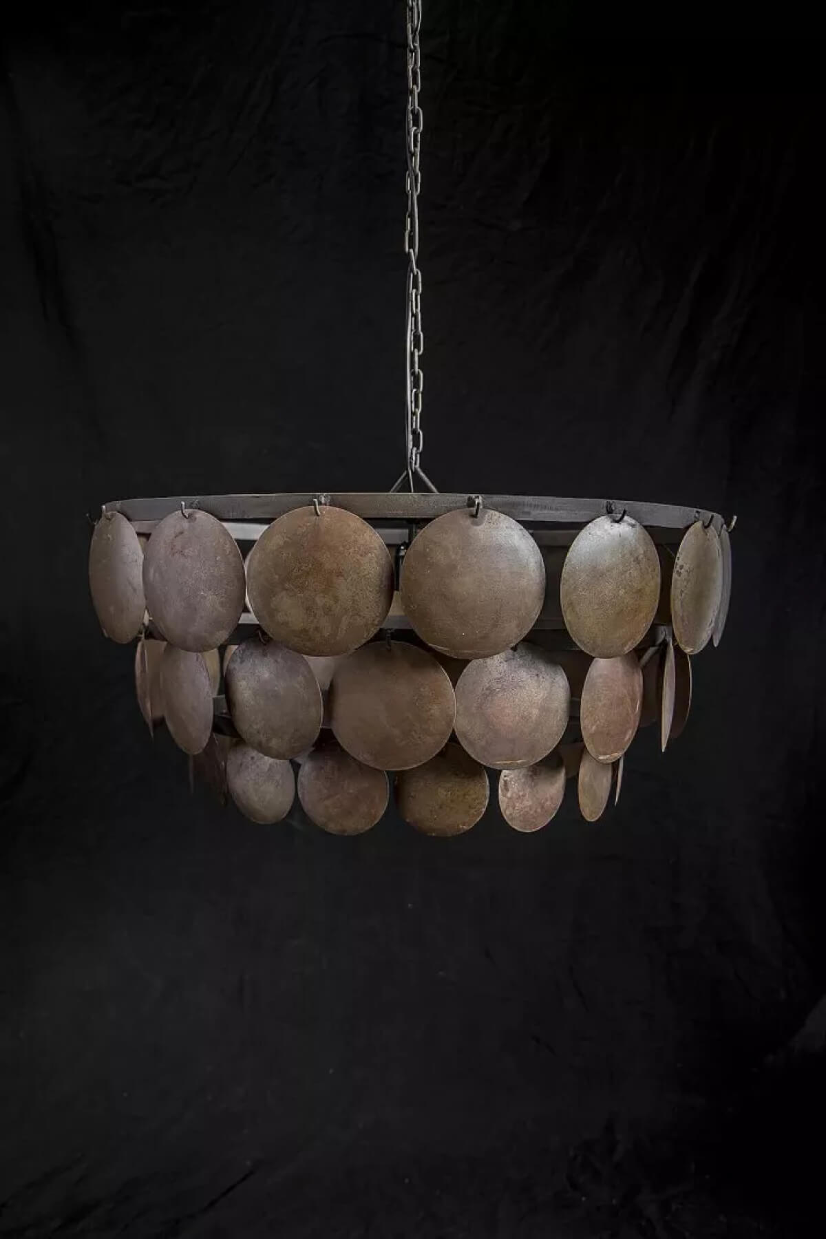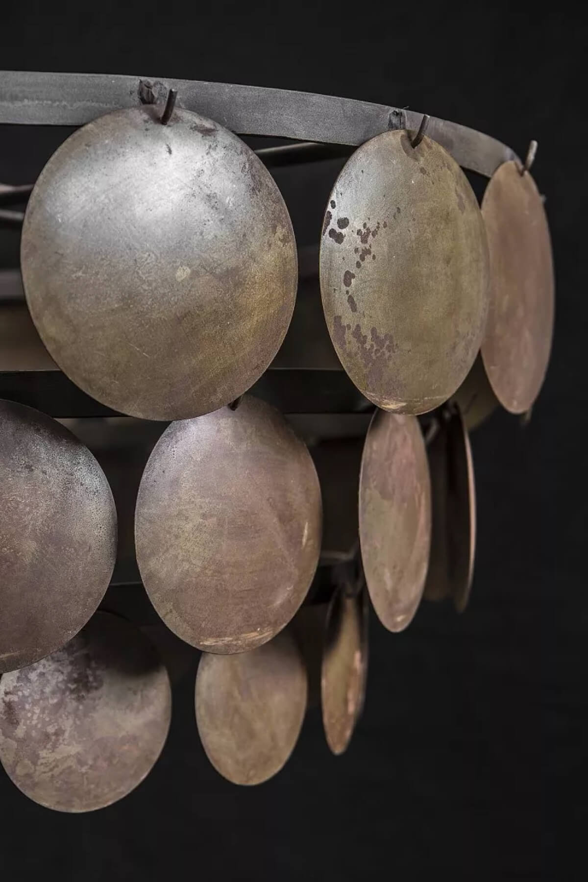 Kroonluchter Mura van Hoffz is al jarenlang een geliefd stijlicoon. De ronde vormen en verweerde ijzeren schijven geven haar een tijdloze, doorleefde uitstraling.