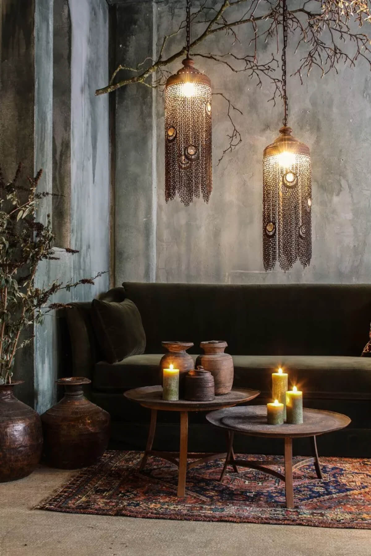 Kroonluchter Sasha van Hoffz is een echte blikvanger. Met haar verfijnde kap, talloze kettingen en subtiele lichtbruine glazen pegeltjes straalt ze pure elegantie uit. Sasha verspreidt een warme, zachte gloed die iedere ruimte omtovert tot een sfeervolle plek.