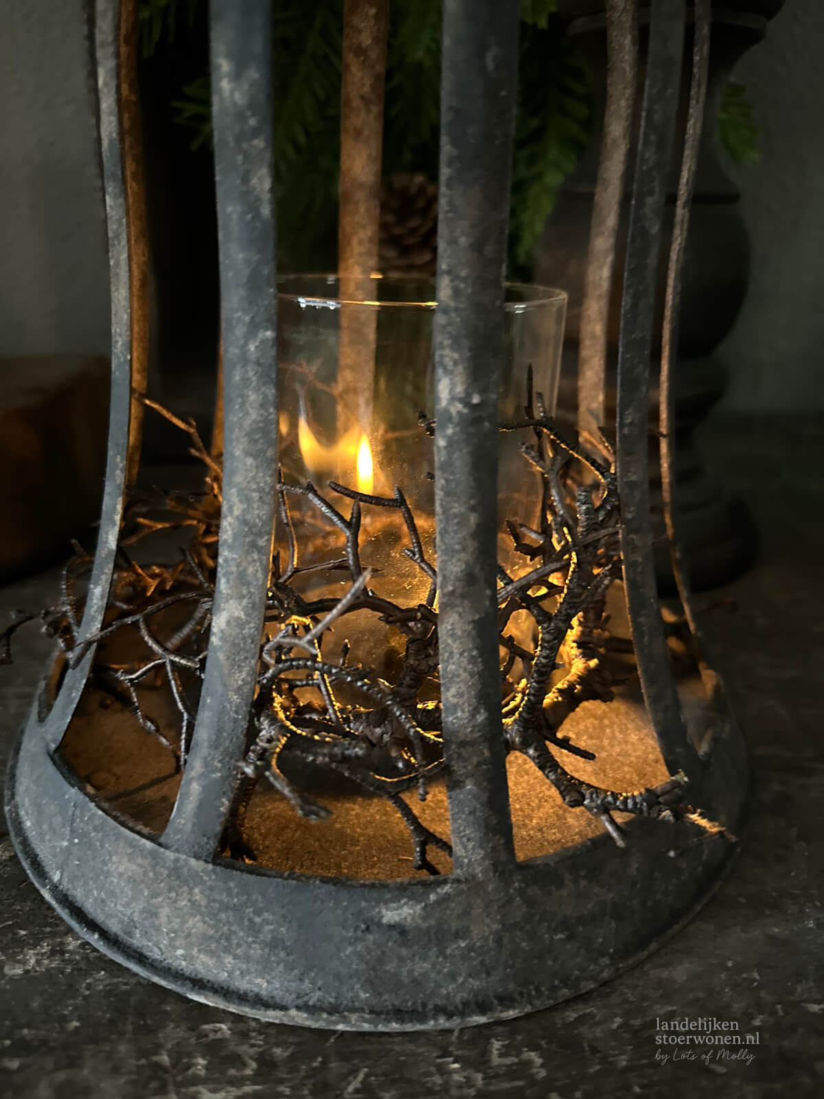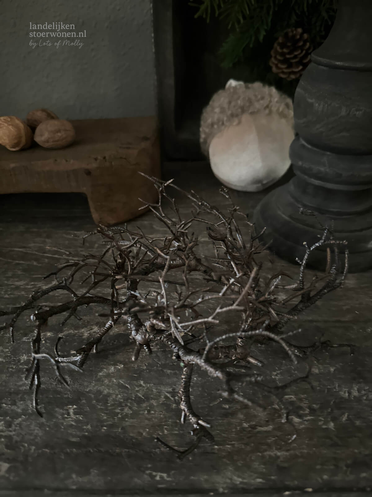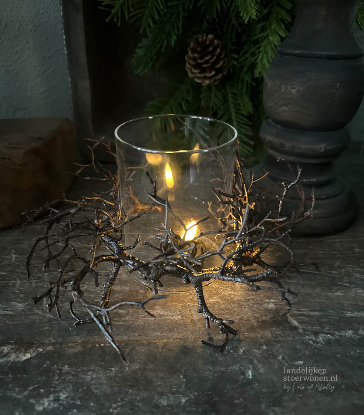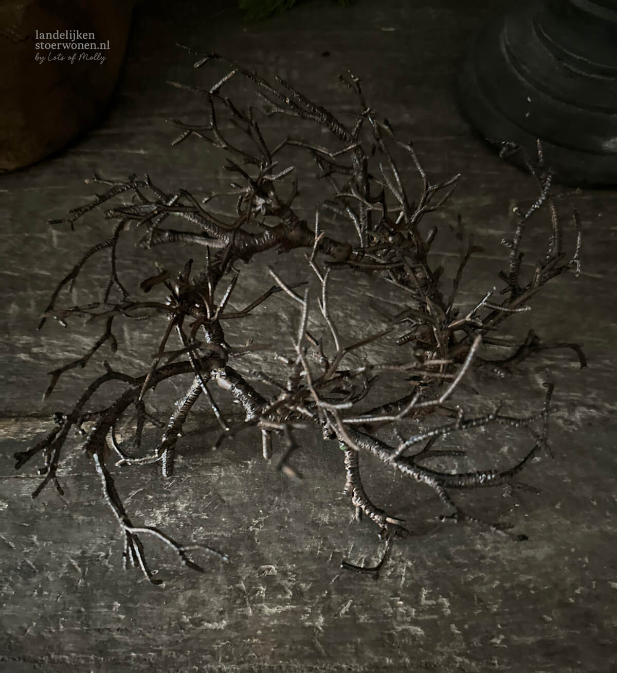 Sfeervol kunstkransje, perfect om een kandelaar of kaars te decoreren.