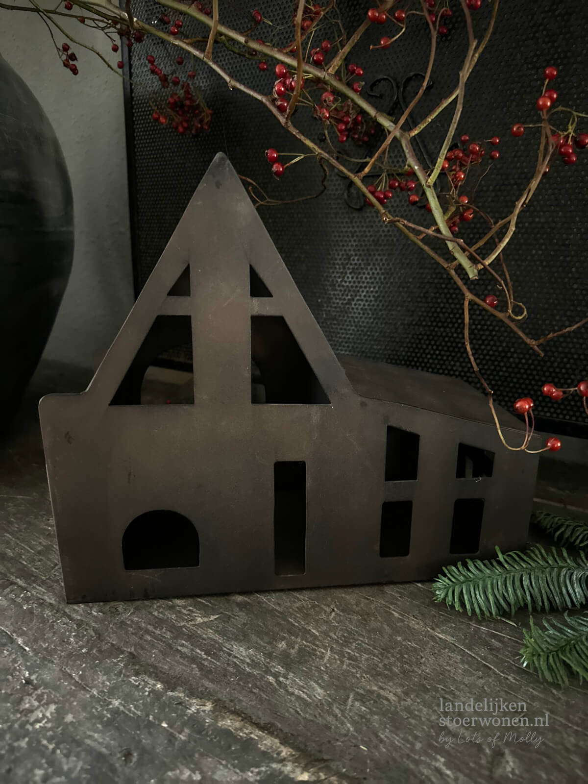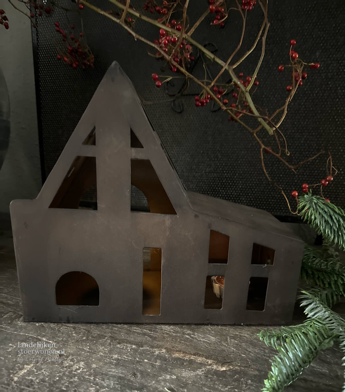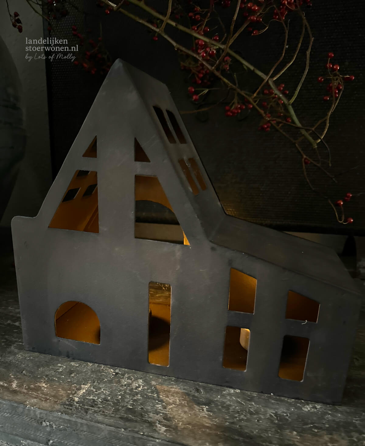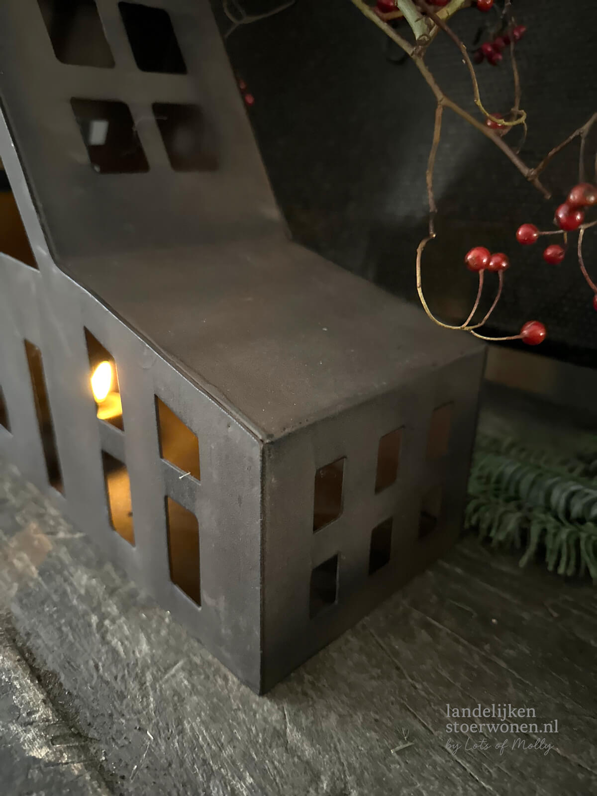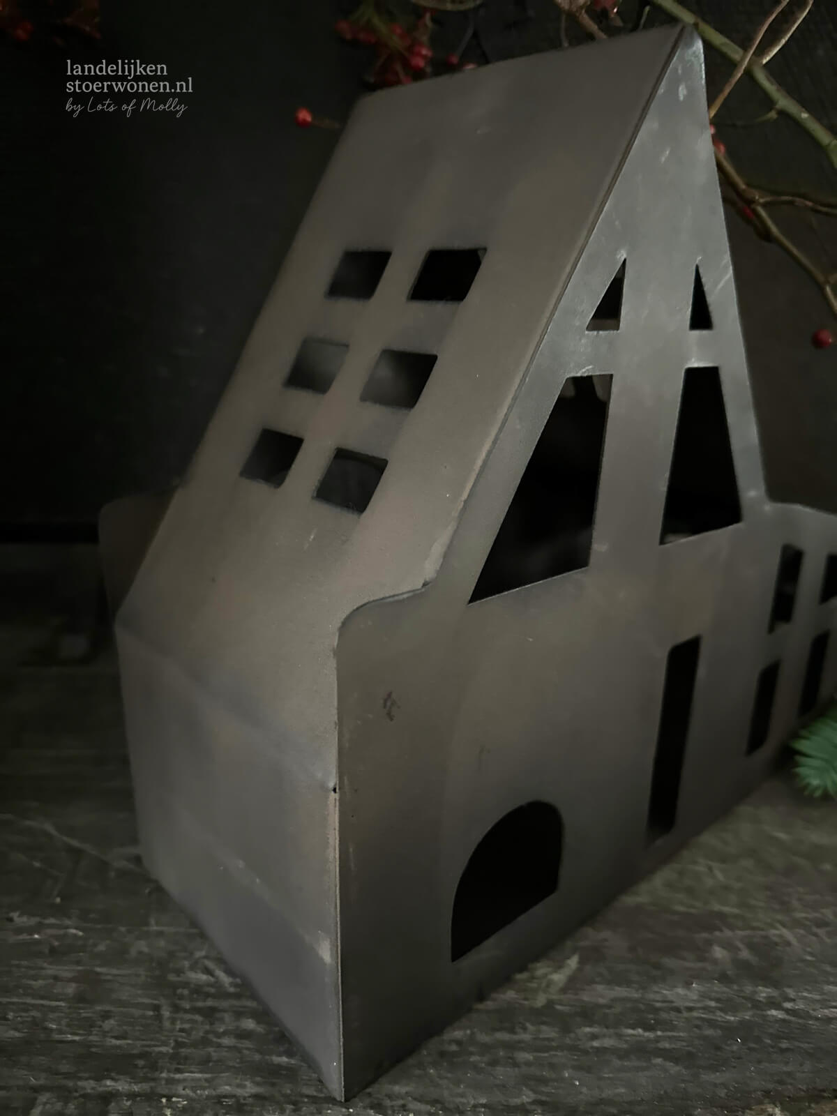 Metalen huisje roest voor waxinelichtje aantal