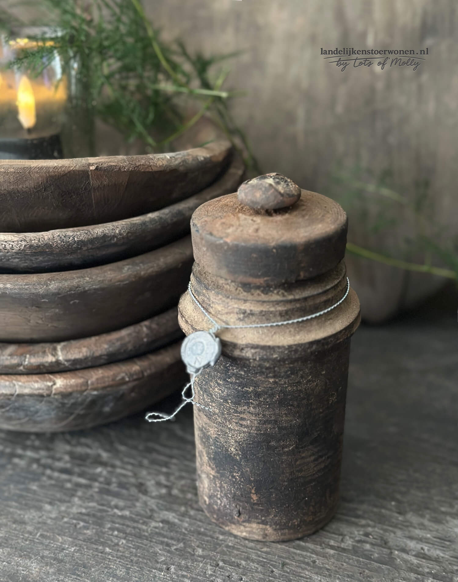 Oud Houten Kruikje met Deksel - Hoffz 22-3 aantal