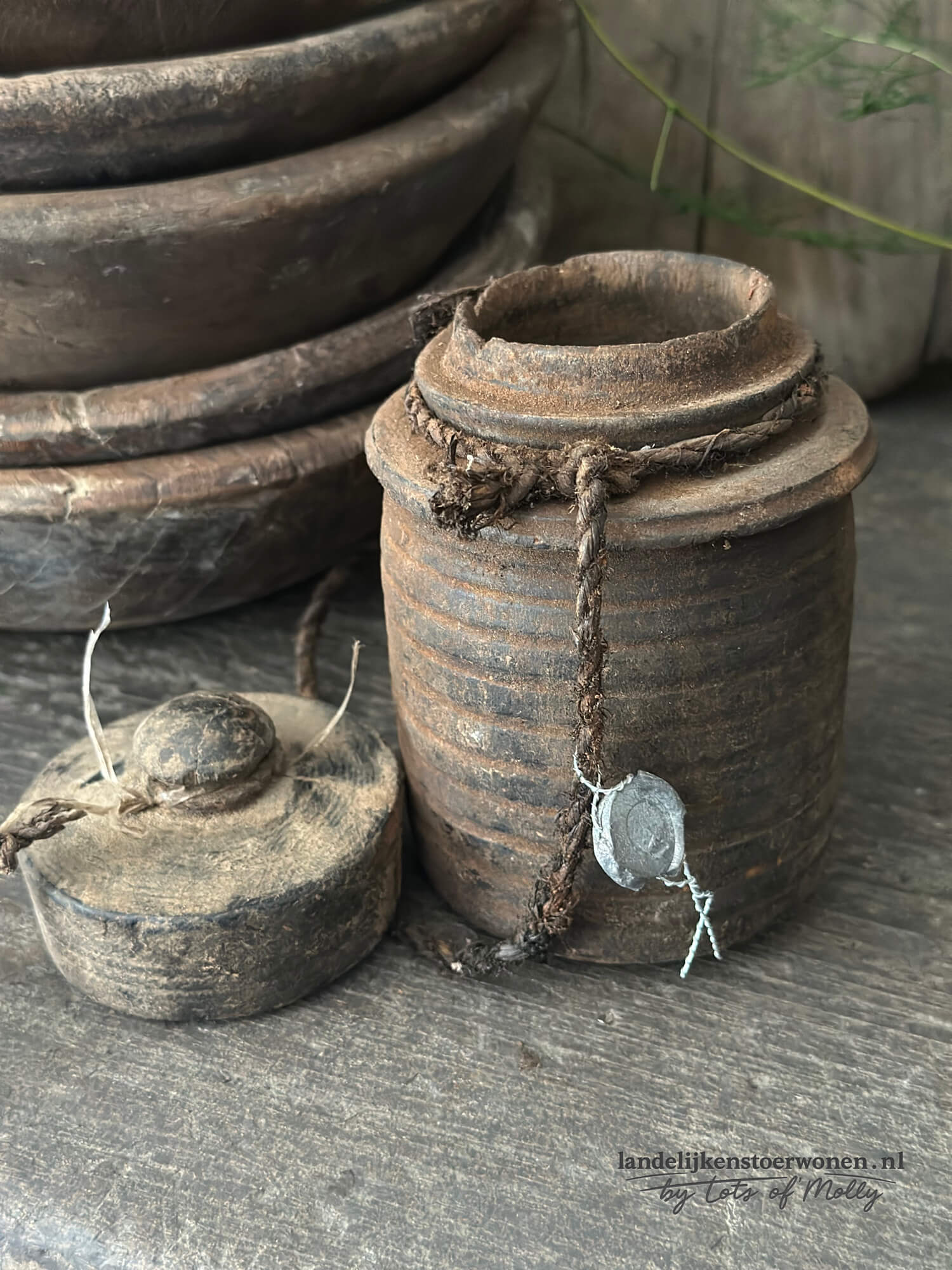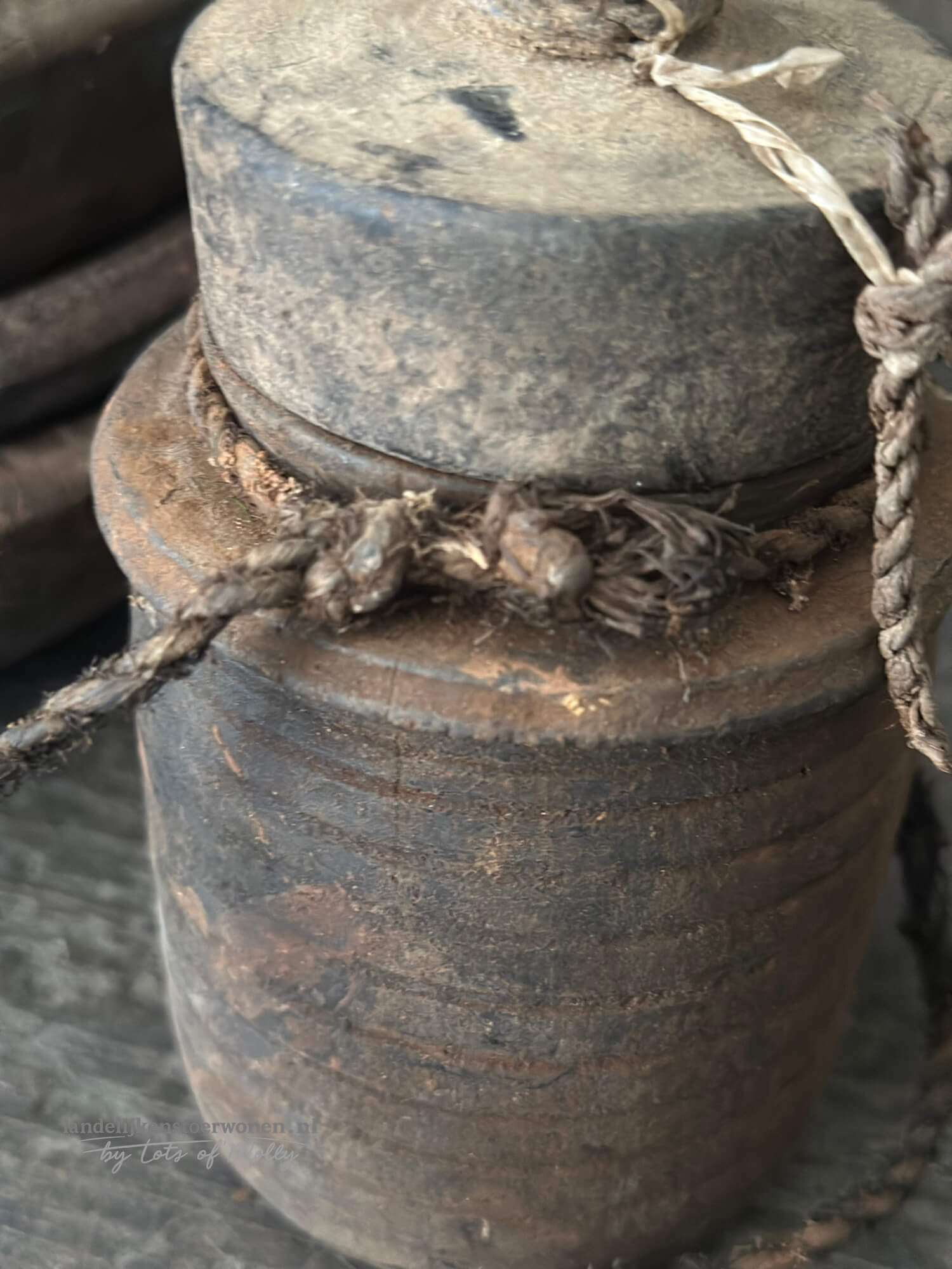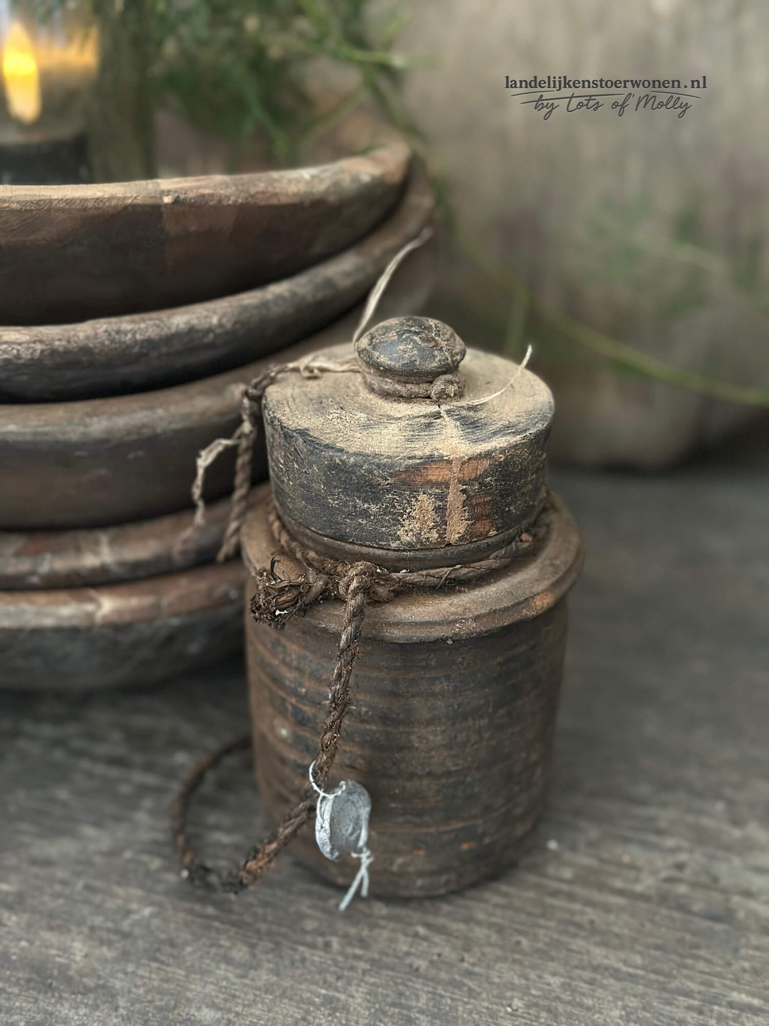 Oud Houten Kruikje met Touw en Deksel – Hoffz 22-6