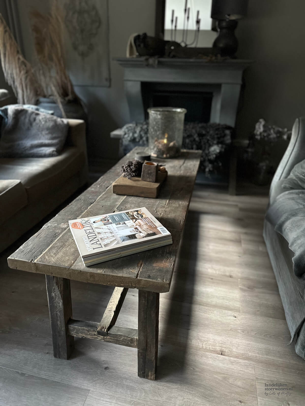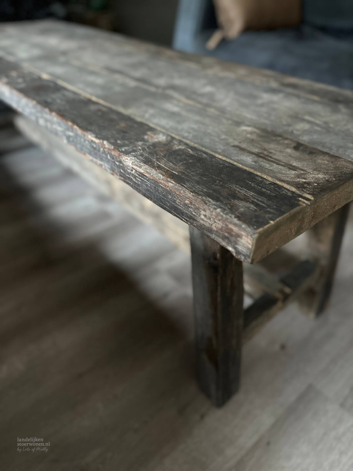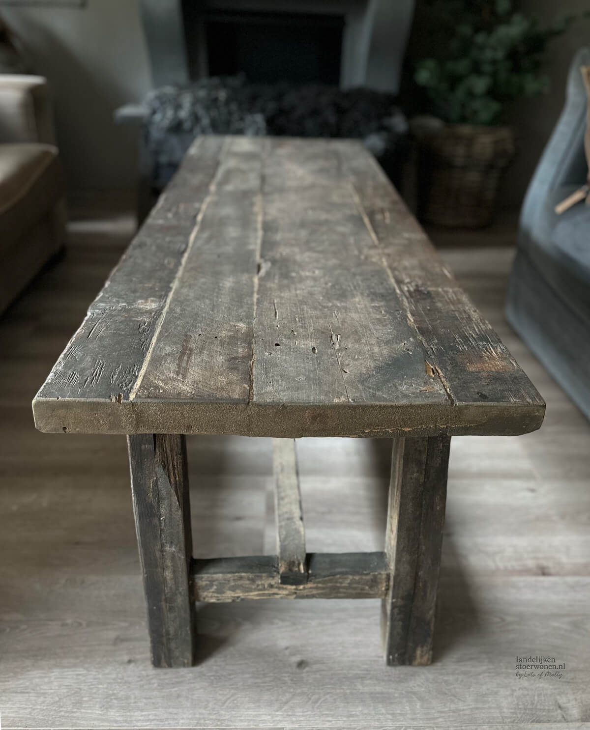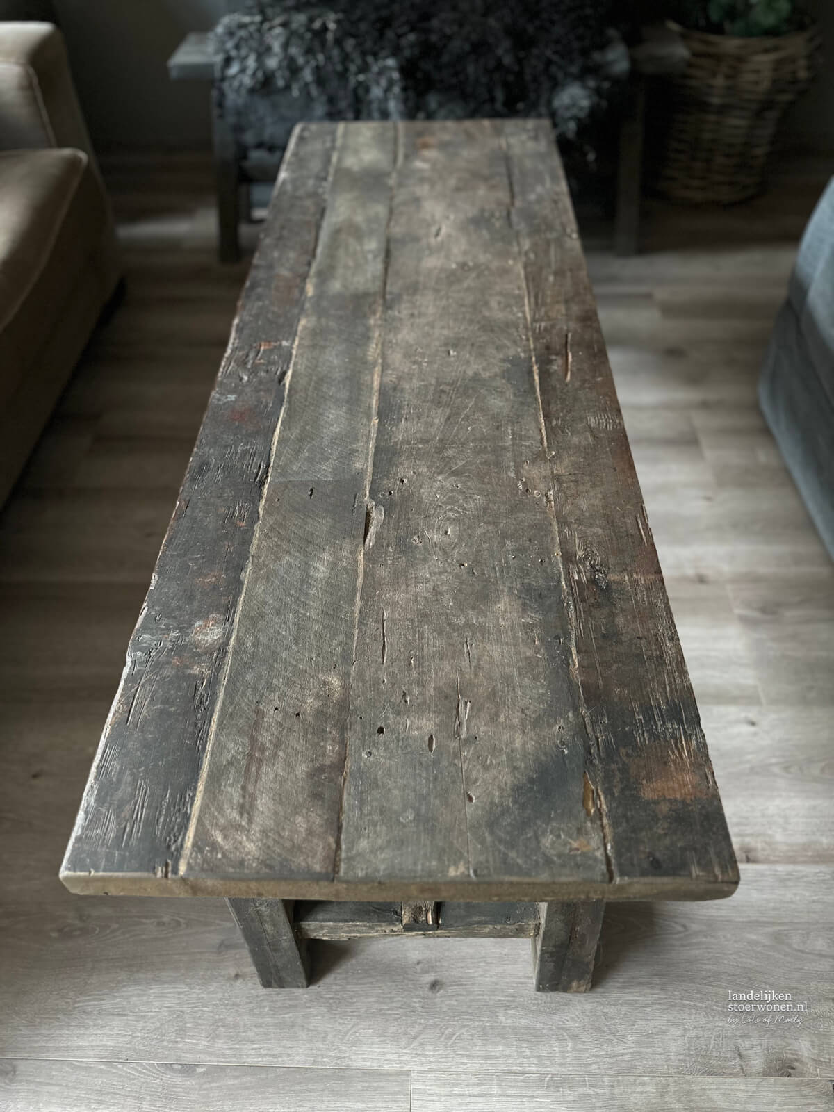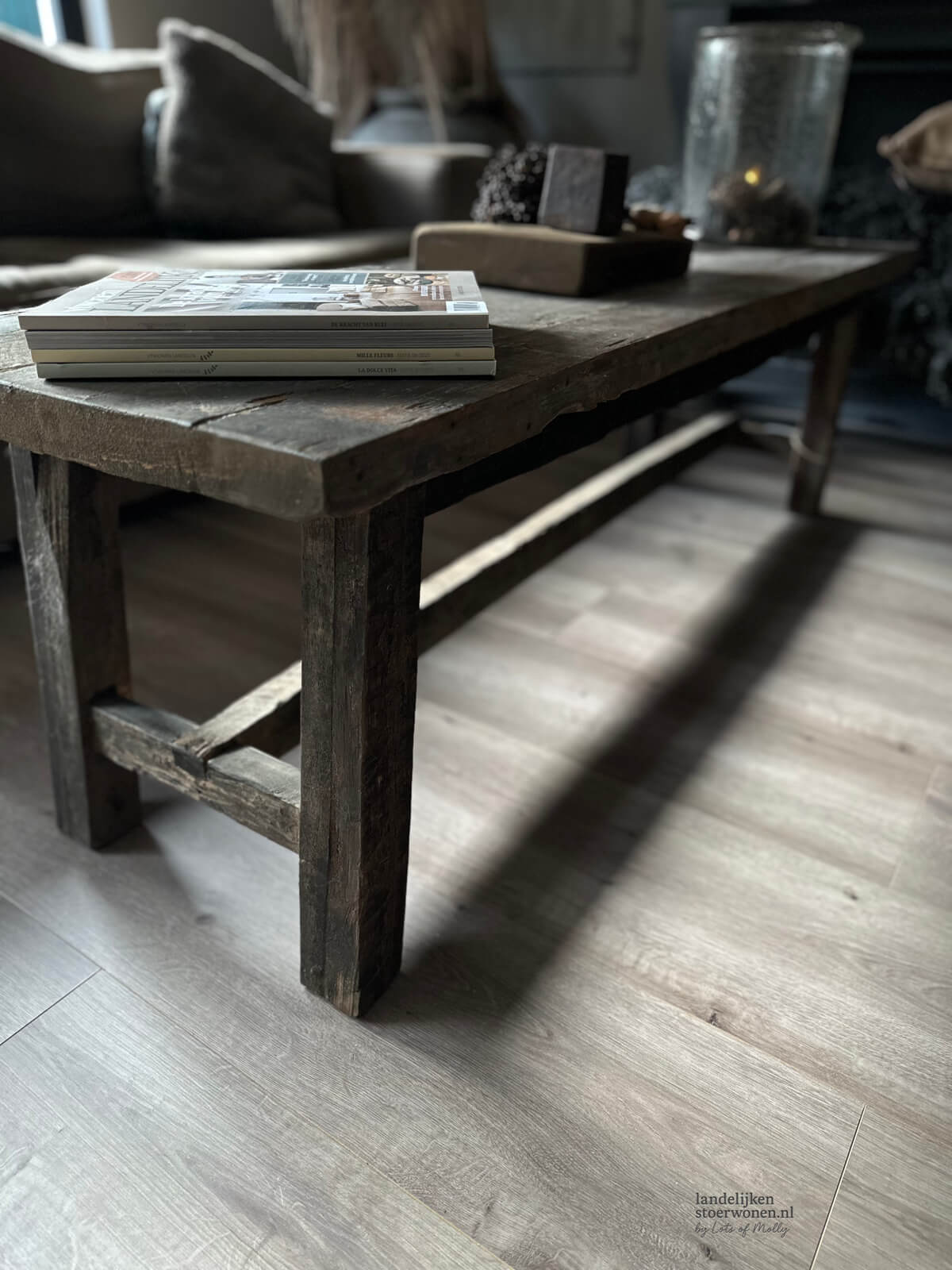 Salontafel uit de Old Farm Aura collectie van Aura Peeperkorn. Gemaakt van oud hout met een doorleefde uitstraling. Elk exemplaar is uniek.