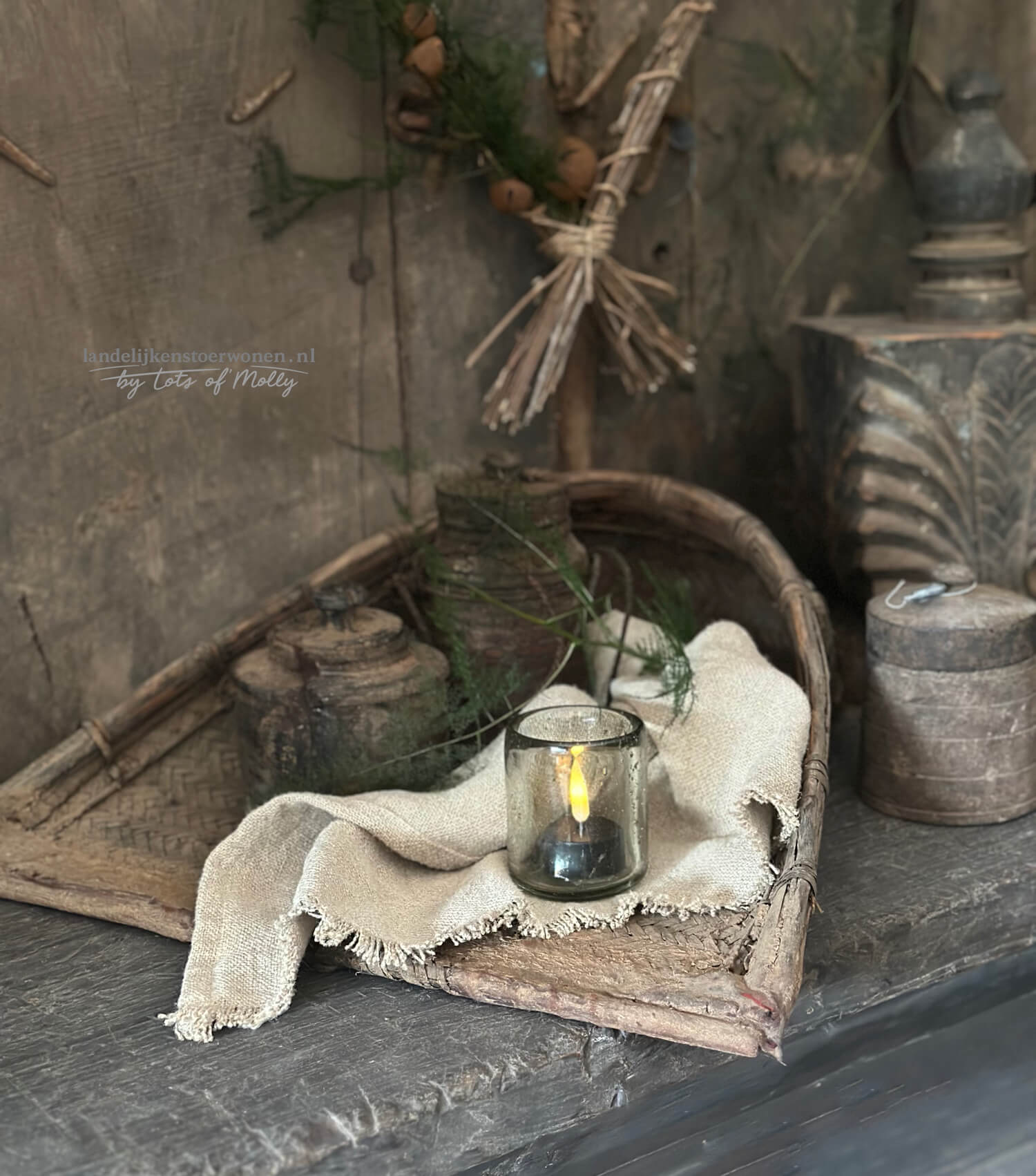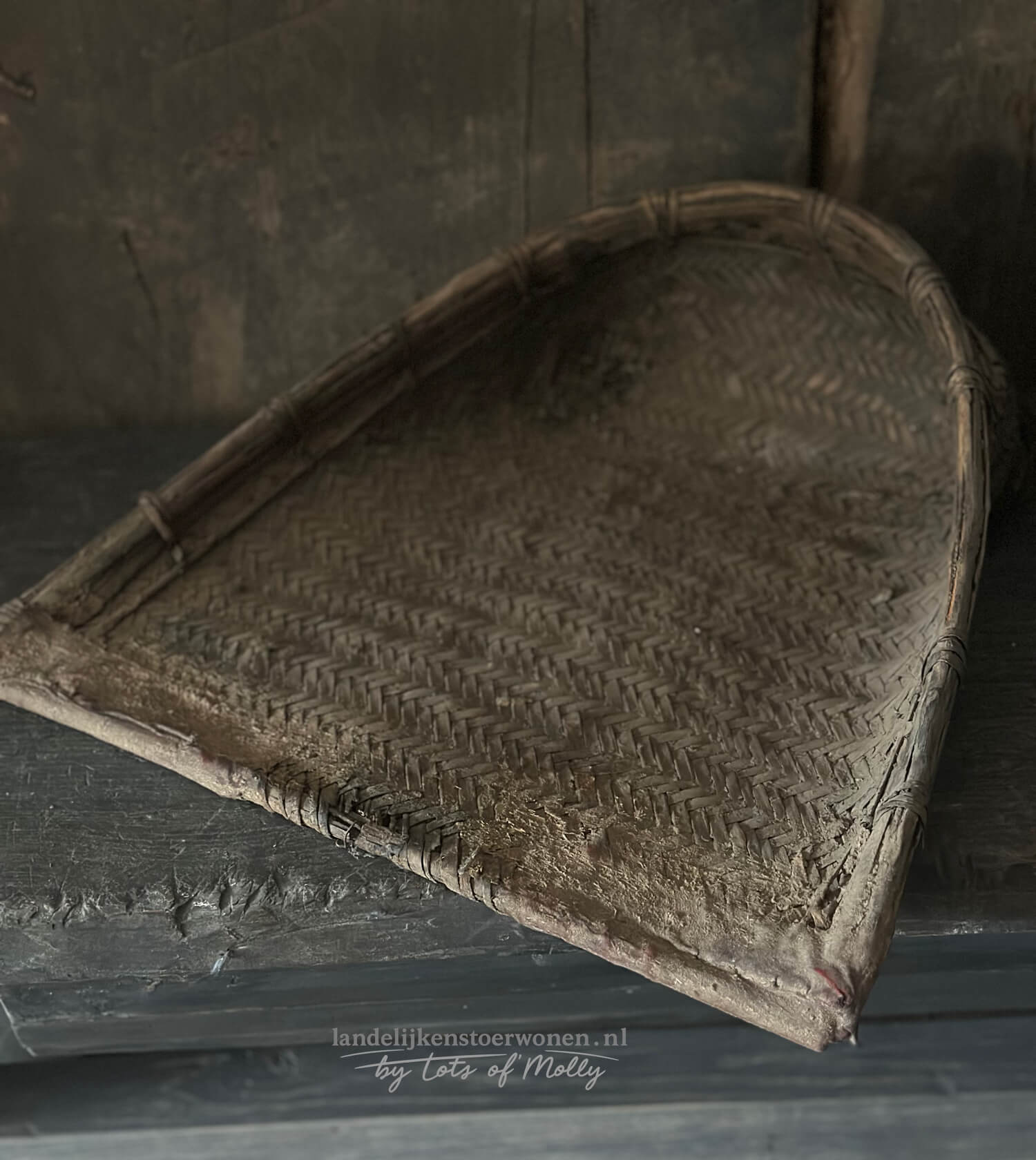 Oude Bamboe Graanschep Handgevlochten #1