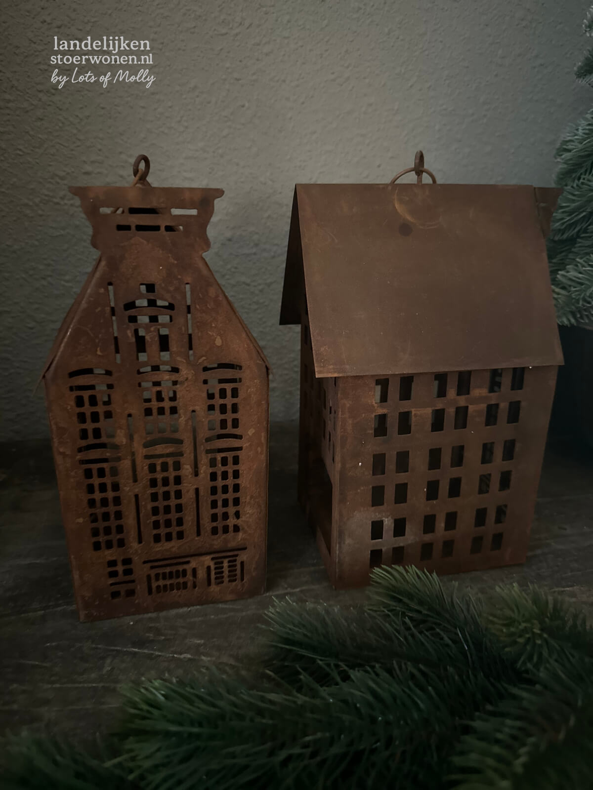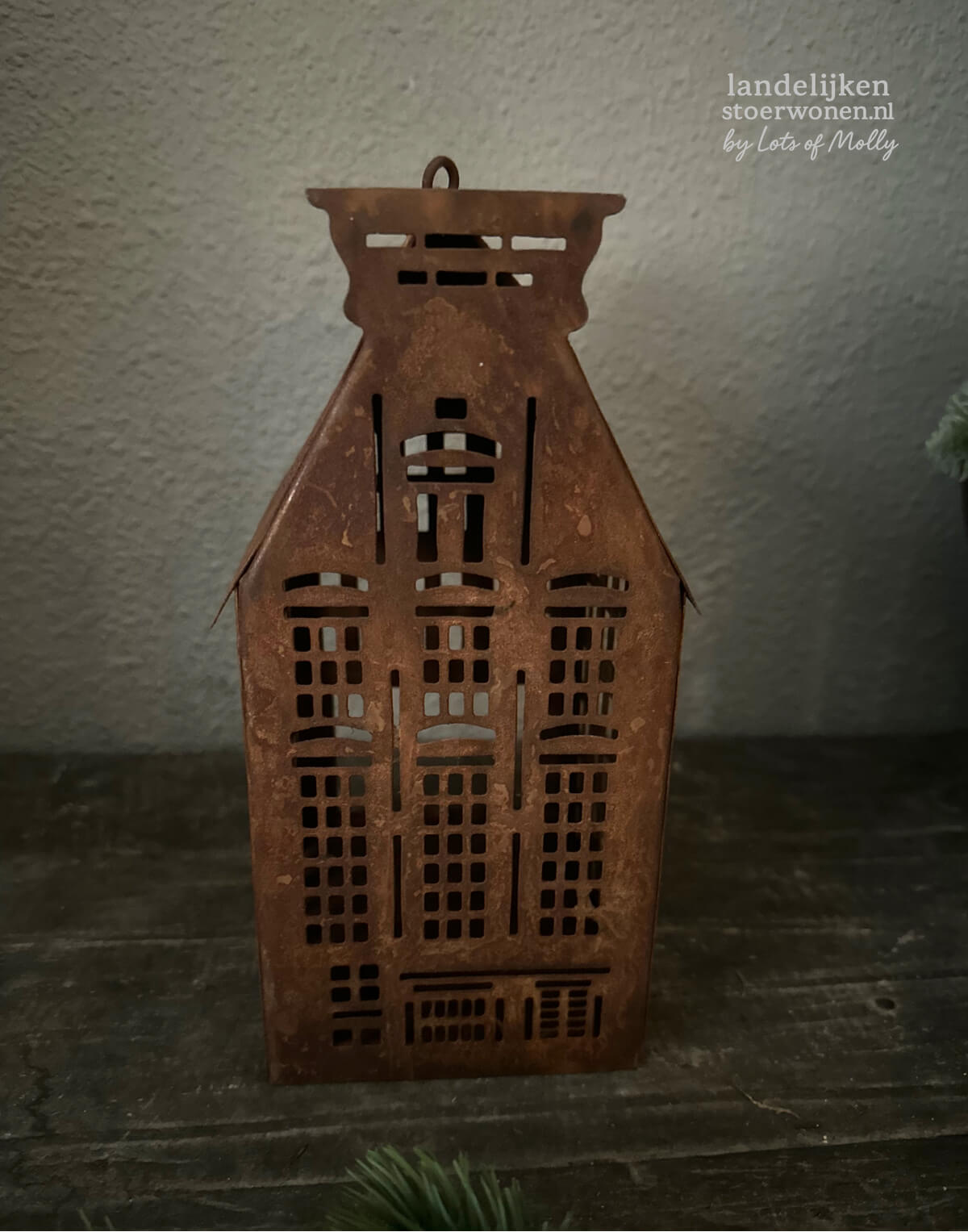 Roestkleurig Amsterdam huisje van metaal. Perfect voor een waxinelichtje.