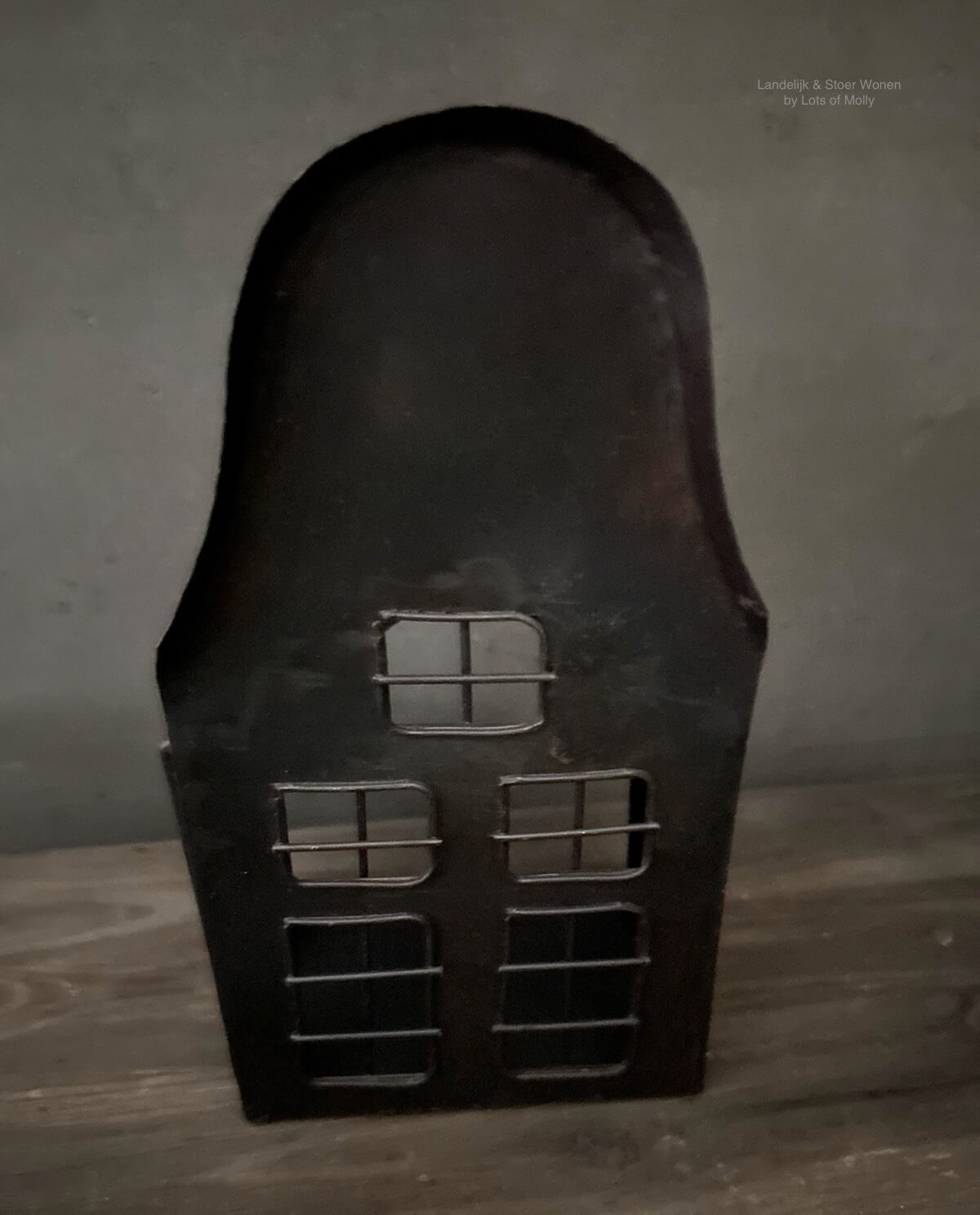 Sfeervol metalen huisje met klokgevel, perfect voor een waxinelichtje