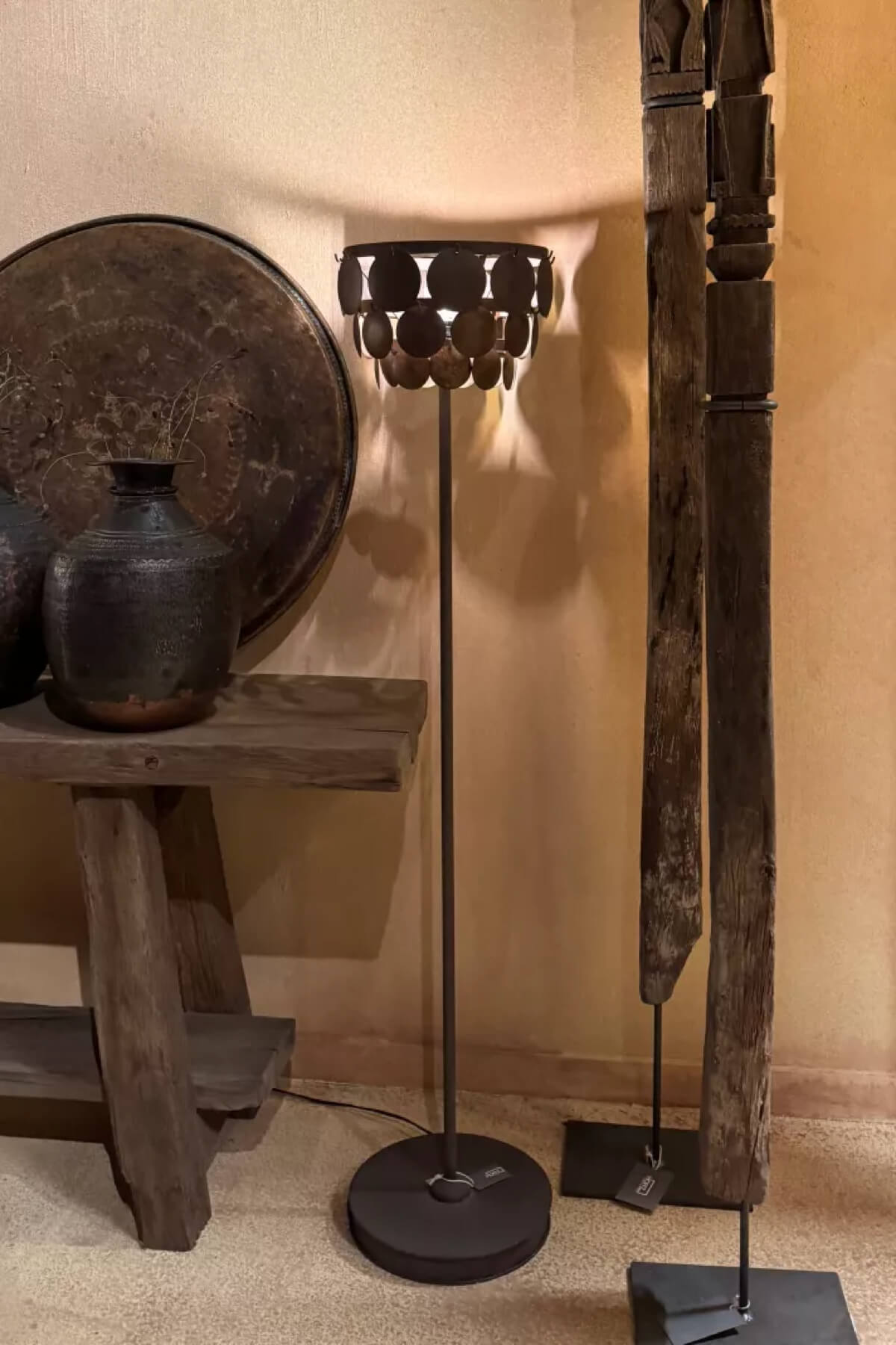 De Staande lamp Mura van Hoffz is een stijlvolle blikvanger met een uniek design en een prachtig verweerde patina. Dankzij haar warme uitstraling en karaktervolle vorm past ze moeiteloos in elk interieur.