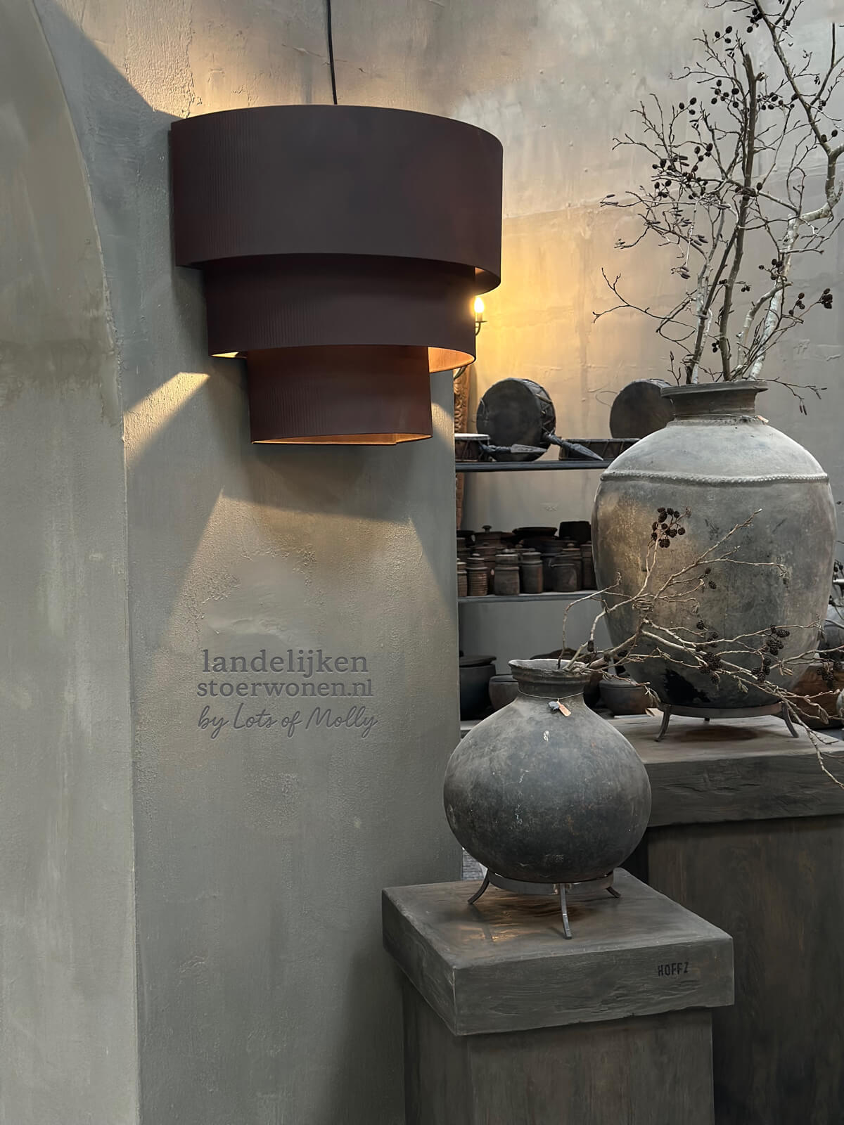 De Rohan wandlamp van Hoffz is een stoere, industrieel-landelijke wandlamp met die typische Hoffz-look: robuust metaal, een doorleefde afwerking en een warm, sfeervol licht.