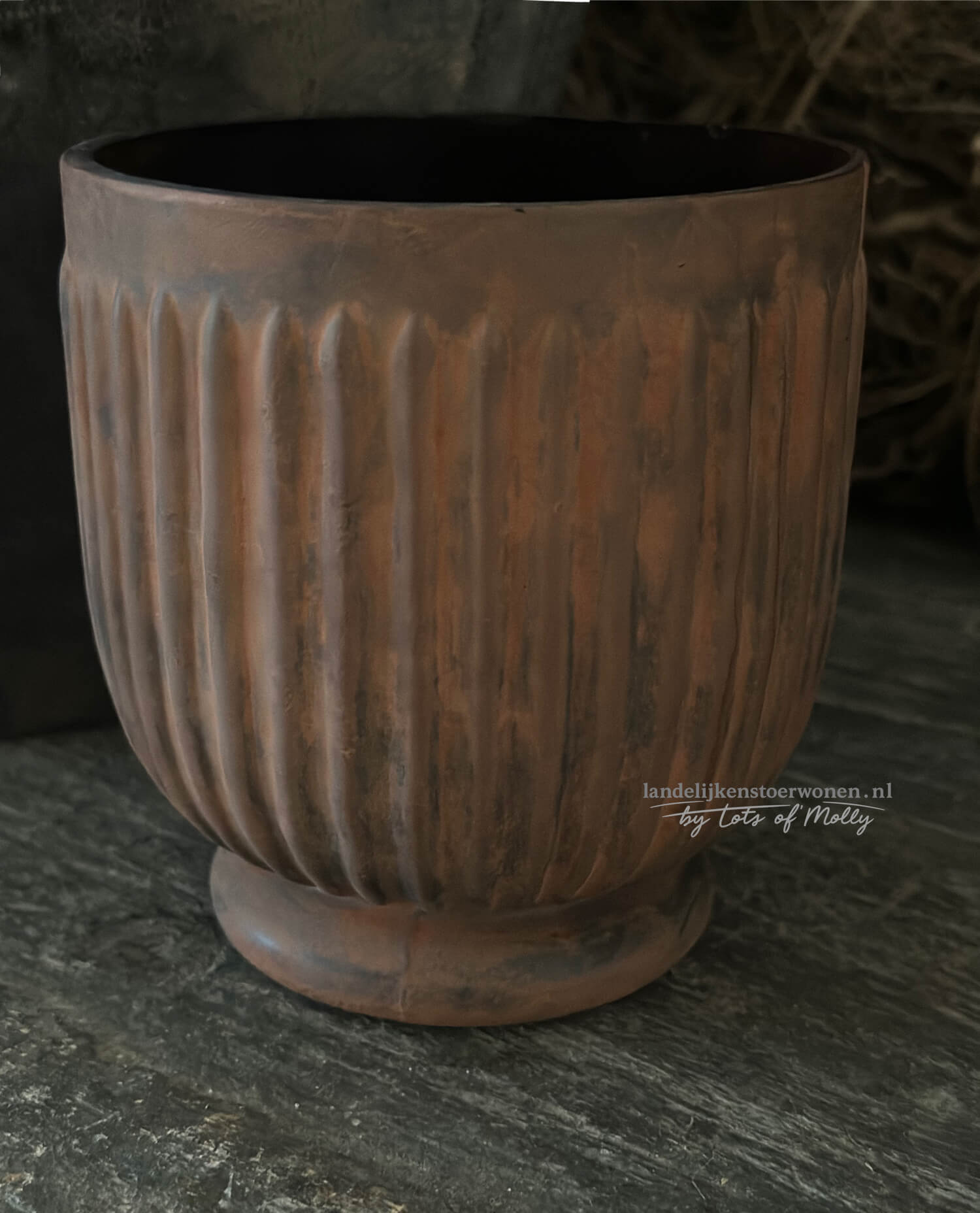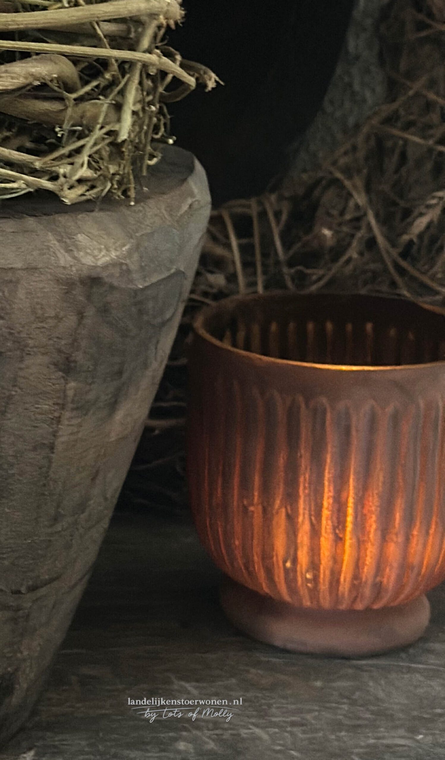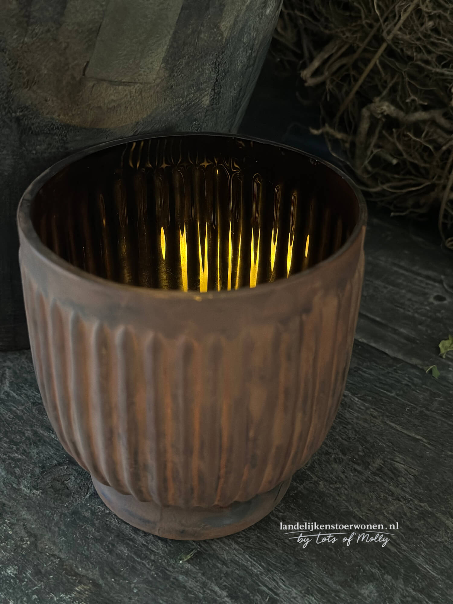 Windlicht glas roest met ribbelstructuur